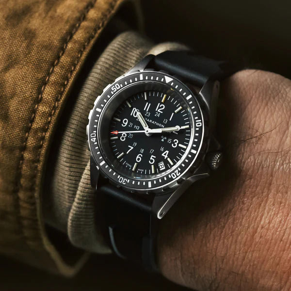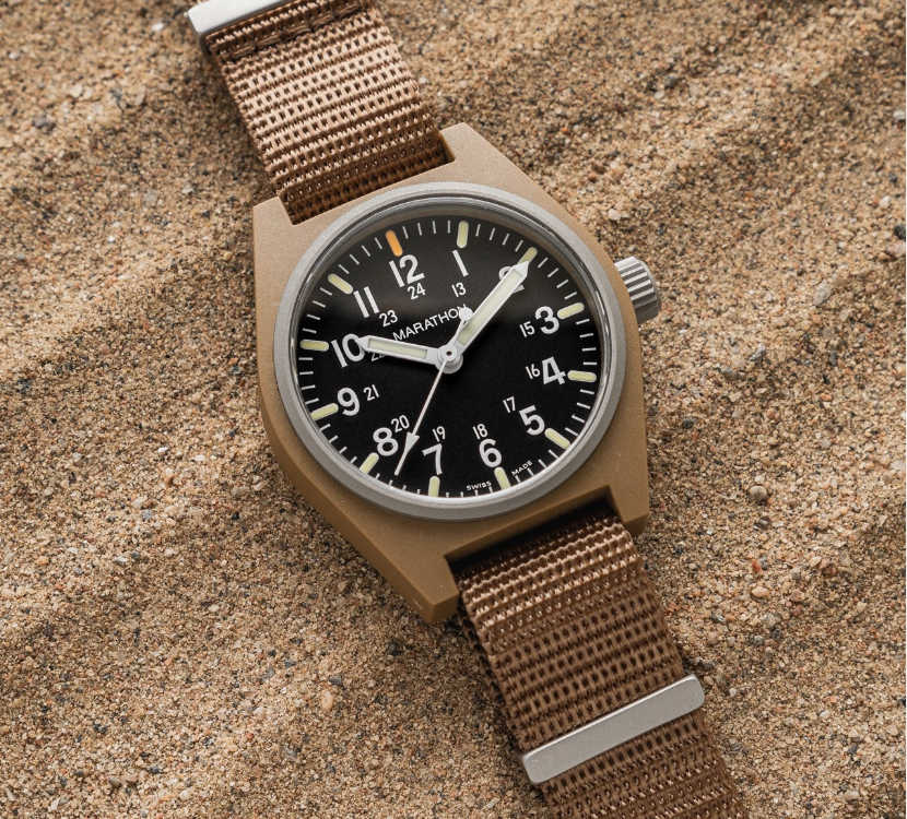 Marathon GPQ WW194004 – Depending on the color version, these can go as low as $300. Of all the watches on this list, this one is probably the biggest hitter! Purposely built as a standard, Military-issue watch, the Marathon has tritium tubes, a sapphire crystal, and a Swiss ETA quartz movement. The fiber shell case is bomb-proof and looks awesome on the wrist. A note on size, these are 34mm and may feel a little small on the wrist for some.
