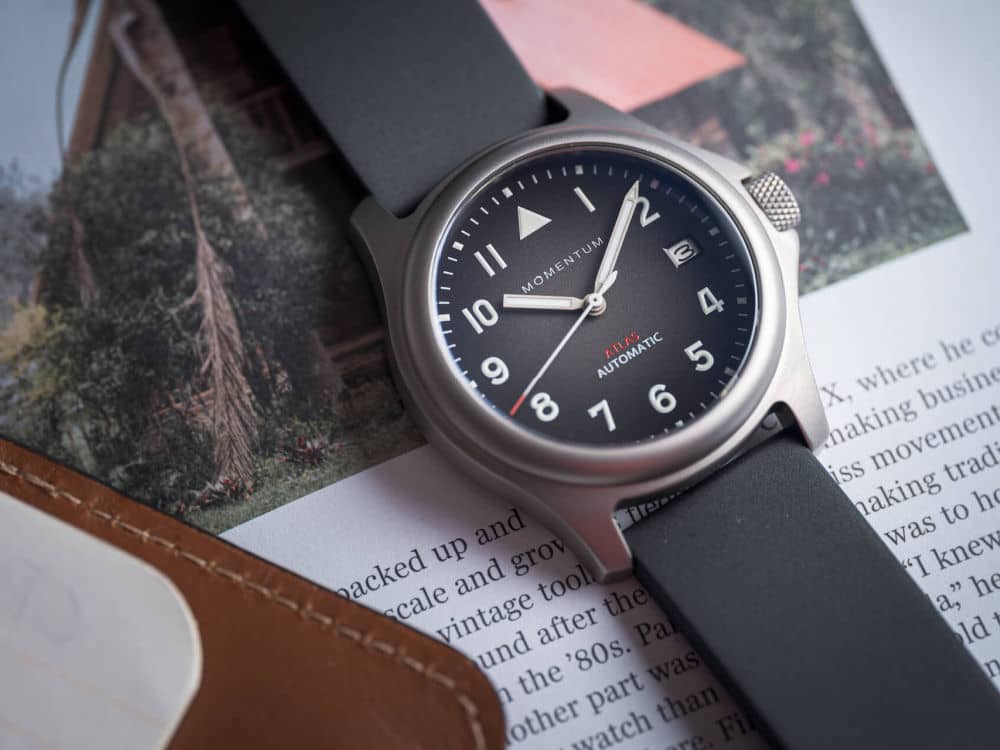 Momentum Atlas Automatic – This good-looking automatic field watch has a Miyota 9015 movement inside with a display case back. This is a cool feature because their movement has been jazzed up with gilt components. It doesn’t make it better, but it’s a nice touch over the regular 9015 version. Plenty of lume here under the sapphire crystal which is all housed in a titanium case.