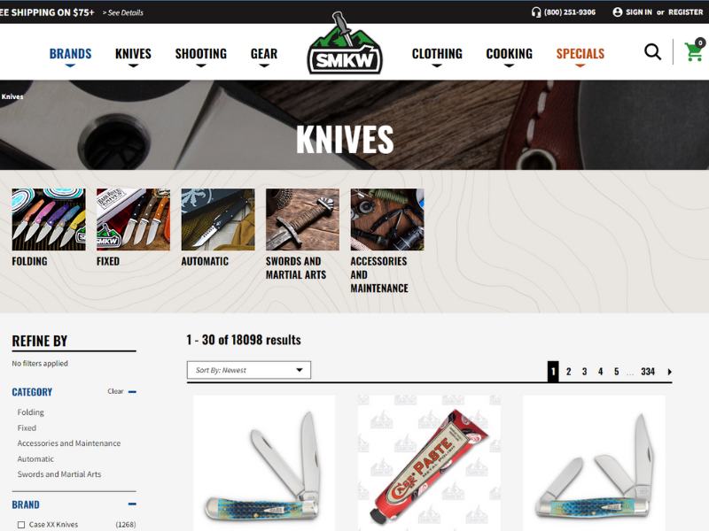 Most items over $75 ship for free, and you can also bundle lower-priced knives together to save on shipping. In addition to knives, SMKW also sells a wide range of gear including clothing, survival and camping gear, kitchenware and shooting accessories.